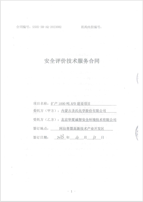 - 内蒙古圣氏化学股份有限公司扩产1000吨APD建设项目 设立安全评价
