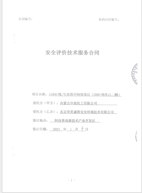 内蒙古中高化工有限公司15000吨/年农药中间体项目(一期5000吨/年1,3-环己二酮)安全设施竣工验收评价